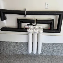 These photos show Pure Way systems installed in real homes — under sinks, in utility rooms, garages, and outdoor service areas. Each installation is tailored to the home’s plumbing layout and water needs.